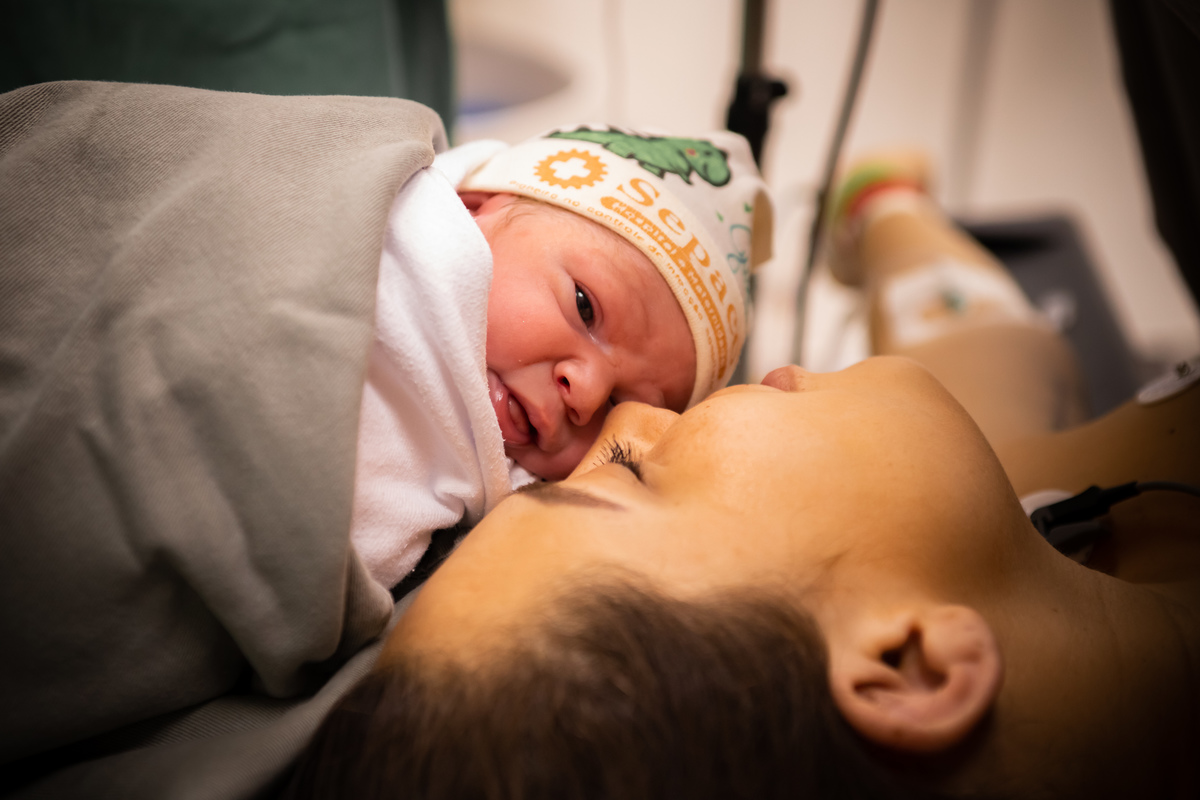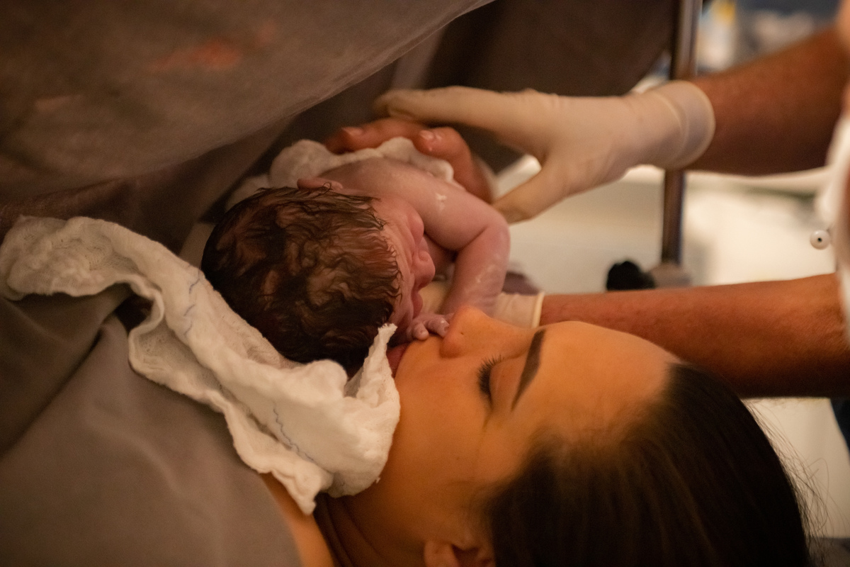 Foi um encontro leve, em um ambiente sereno, com sua Doula Pamela ajudando a cuidar do emocional da mamãe, que vinha de alguns dias de internação.